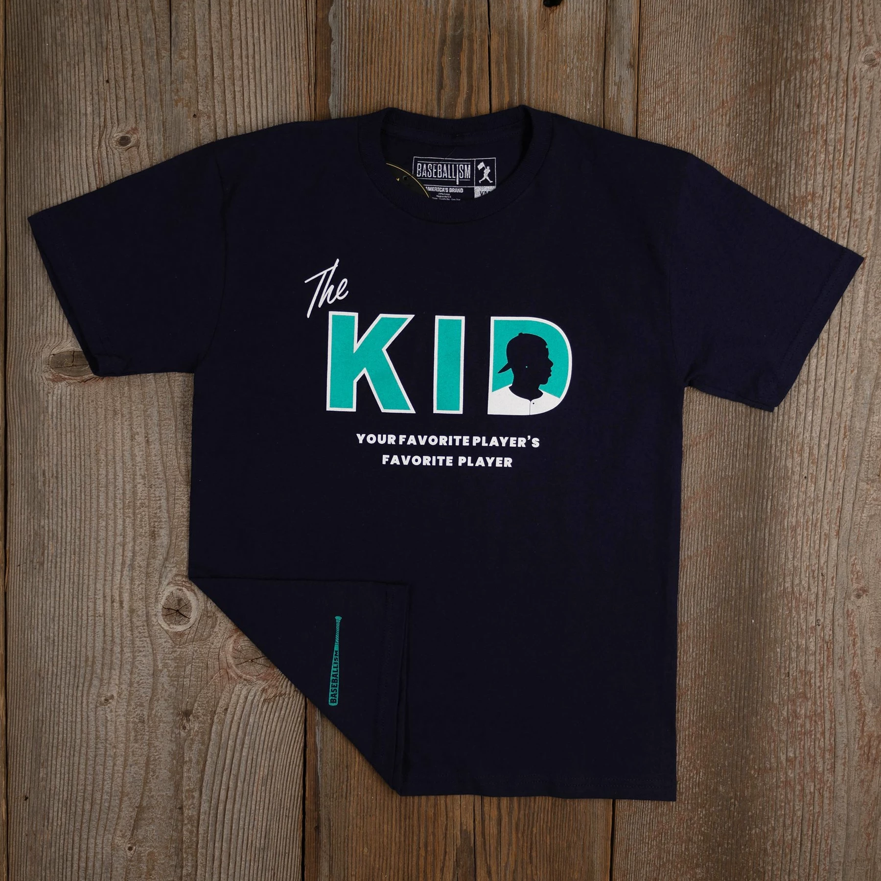 – Vintage Baseballism bat logo is screened on back right of the garment